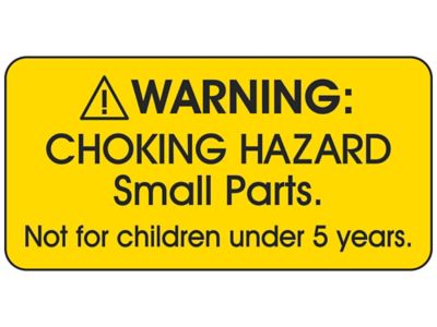 Choking hazard warning label size requirements. Packaging's role in protecting children from choking hazards The required wording varies, depending on whether the part is a ball or marble, for example. When the concern is over an otherwise unidentified part, however, the warning must have the alert icon of an exclamation point inside a triangle, followed by, WARNING: CHOKING HAZARD- Small parts. Not for children under 3 yrs. PDF Labeling Requirements for Children's Products WARNING: CHOKING HAZARD - Small parts. Not for children under 3 yrs. ⚠. WARNING: CHOKING HAZARD- This toy is a small ball. Not for children under 3 yrs. ⚠W. ARNING: CHOKING HAZARD-Toy contains a small ball. Not for children under 3 yrs. ⚠. WARNING: CHOKING HAZARD - Children under 8 yrs. can choke or suffocate on uninflated or broken balloons. 15 U.S. Code § 1278 - Requirements for labeling certain toys and games ... (1) requirement in the case of any latex balloon, any ball with a diameter of 1.75 inches or less intended for children 3 years of age or older, any marble intended for children 3 years of age or older, or any toy or game which contains such a balloon, ball, or marble, which is manufactured for sale, offered for sale, or distributed in commerce … How To Create A Warning Label For A Choking Hazard Creating a warning label for a choking hazard must follow the specific format approved by the CPSC. Instructions 1.Determine which component poses a choking hazard. Common choking hazards include any small item that will fit in a child's mouth. 2.Insert a bullet in your word processor page and type "Choking Hazard" beside it.