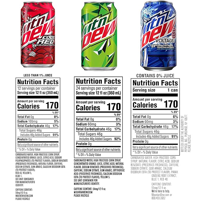 Mountain Dew, Pitch Black, 16 Fl Oz (Pack of 15) - amazon.com Mountain Dew, 12 oz (pack of 12) 5,625 6 offers from $10.05 Mountain Dew, MTN Original and Major Melon Variety Pack 12oz Cans Pack, Watermelon, 18 Count 645 12 offers from $12.00 Mountain Dew Soda, 7.5 Ounce Mini Cans, 10 Pack 2,903 10 offers from $4.50 Mountain Dew Soda, 12 Fl Oz (pack of 24) 2,672 7 offers from $12.99