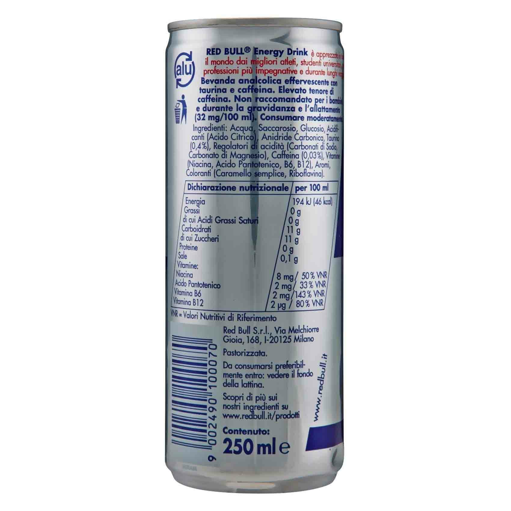 Red bull nutrition label