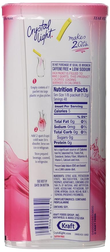 Crystal Light Label / Is Crystal Light Bad For You Halegenic With zero grams of sugar and only 5 calories per serving, crystal light is a sweet alternative to juice and soda and has 90 percent fewer calories than leading . Sold elsewhere in its ingredients, labeling and allergen warnings. With no artificial sweeteners, flavors, or preservatives, crystal light pure mixes up into pure .