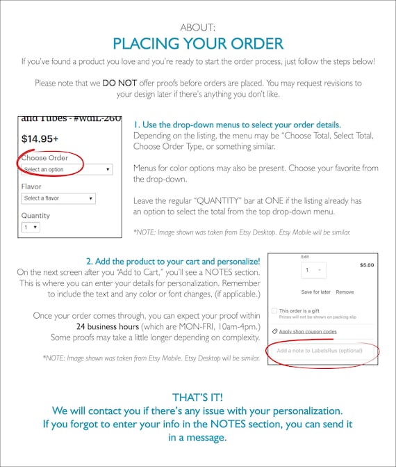 Reprint Shipping Label - Etsy To personalize an item: Open the listing page. Choose the options you'd like for the order. This will differ depending on what options are available for the item. Under "Add your personalization," the text box will tell you what the seller needs to know. Fill out the requested information.