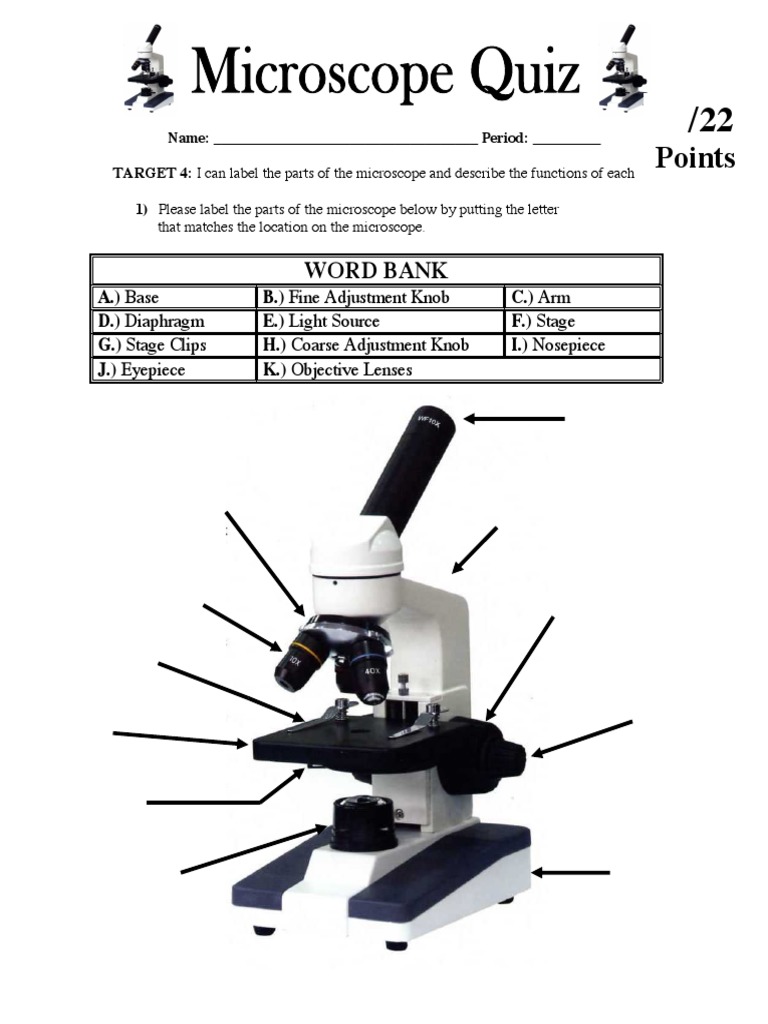PDF Microscope labeling and functions quizlet - Weebly Microscope Quiz 1 (pdf) - Student quiz on the parts of a microscope. Microscope Quiz 2 (pdf) - This quiz includes sections on labeling the parts of a micrscope as well as questions about power of magnification. Microscope Specimen Cards (pdf) - Small cards students can use to document the different specimens they view with the microscope.