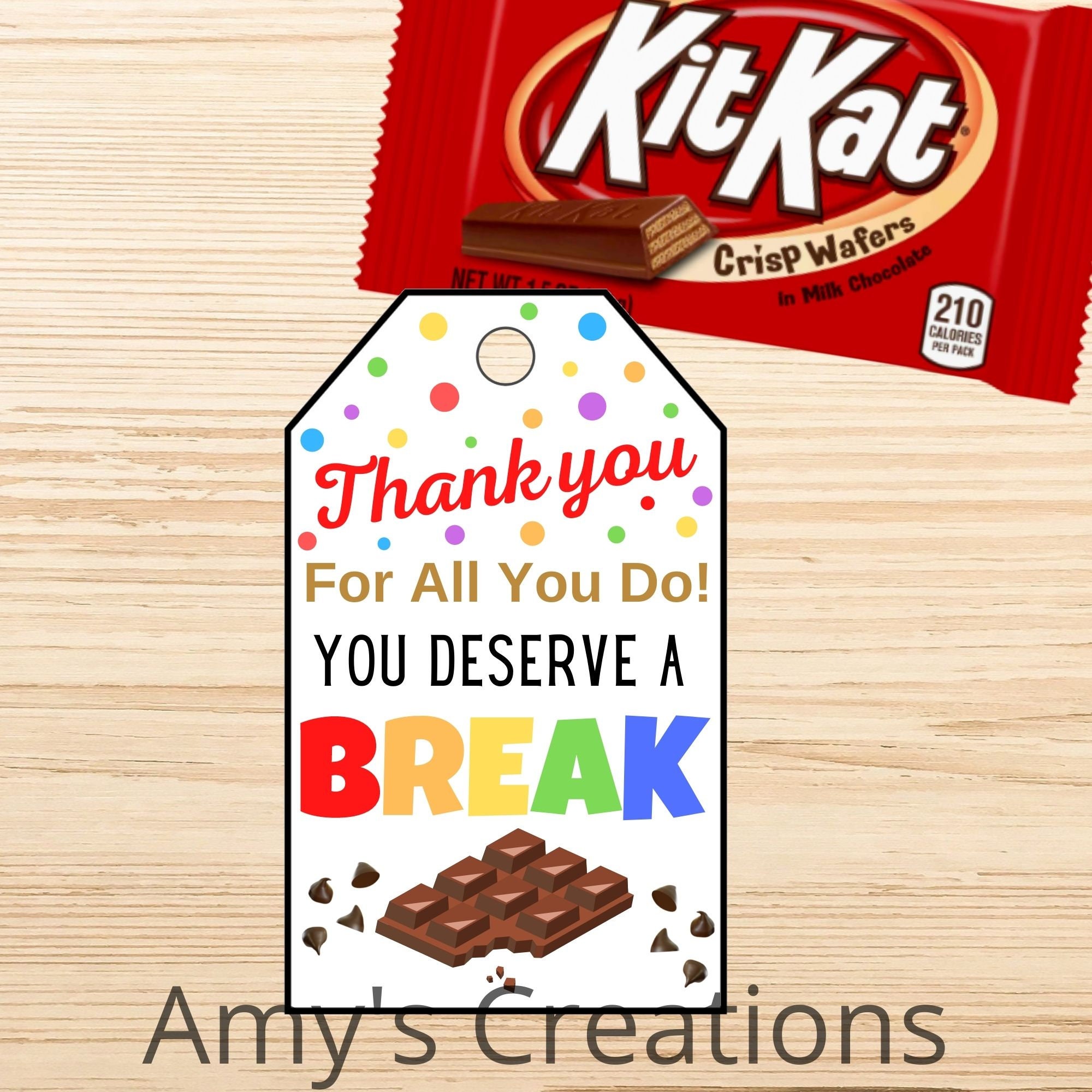 Kit Kat Break Teaching Resources | Teachers Pay Teachers These adorable gift tags are a thoughtful way to let your students know that they've worked hard and deserve to have a break! File can be edited to include your name and message altered if needed! Then, simply print, cut out and attach kit-kat chocolate!Hope your students enjoy the lovely gift tags!