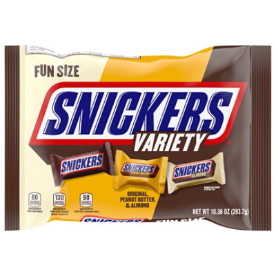Calories in Snickers Minis - CandyCalories.com Nutritional breakdown for one bite-size Snickers candy bar. Calories: 44 Calories From Fat: 19 Fat: 2.2 grams Saturated Fat: 0.8 grams Trans Fat: 0 grams Cholesterol: 1.2 milligrams Sodium: 22 milligrams Carbohydrates: 5.5 grams Fiber: 0.2 grams Sugars: 4.5 grams Protein: 0.7 grams Nutrition Facts for One Serving Snickers bar Nutrition Facts - Eat This Much Snickers bar Candies, mars snackfood us Find on Amazon Percent calories from... Quick stats 279.9 Calories 35.1g Carbs (33.7g net carbs) 13.6g Fat 4.3g Protein Estimated $0.44 Try our free Diet Generator I want to eat in I like to eat Not the food you're looking for? Try these: SNICKERS Bar nutrition facts and analysis. SNICKERS Bar contains 280 calories per 57 g serving. This serving contains 14 g of fat, 4.3 g of protein and 35 g of carbohydrate. The latter is 29 g sugar and 1.3 g of dietary fiber, the rest is complex carbohydrate. Snickers 100 Calories Chocolate Candy Bars, 0.76 Ounce (Pack of 24) Snickers 100 Calories Chocolate Candy Bars, 0.76 Ounce (Pack of 24) Visit the Snickers Store 3,668 ratings | 15 answered questions $2949 ($1.62 / Ounce) About this item Contains one (1) 24-count box of .76-ounce SNICKERS 100 Calories Milk Chocolate Bar Candy This satisfying full-sized chocolate bar is a great 100-calorie dessert