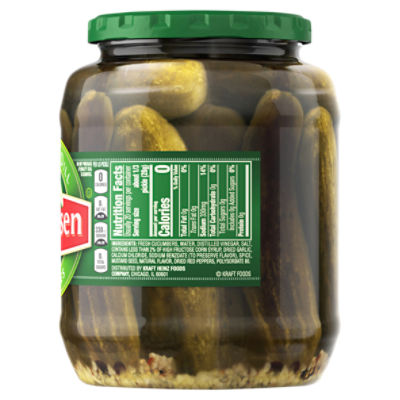 Claussen Kosher Dill Pickle Wholes, 32 fl oz - Kroger Pickled with a unique spice blend of turmeric, garlic and red pepper, our whole dill pickles are great served on the side with your burgers, hot dogs and sandwiches. Claussen pickles are vegan, Kosher Certified and a fat free food, making them a delicious snack. Keep our 32-ounce resealable jar of pickle wholes refrigerated.