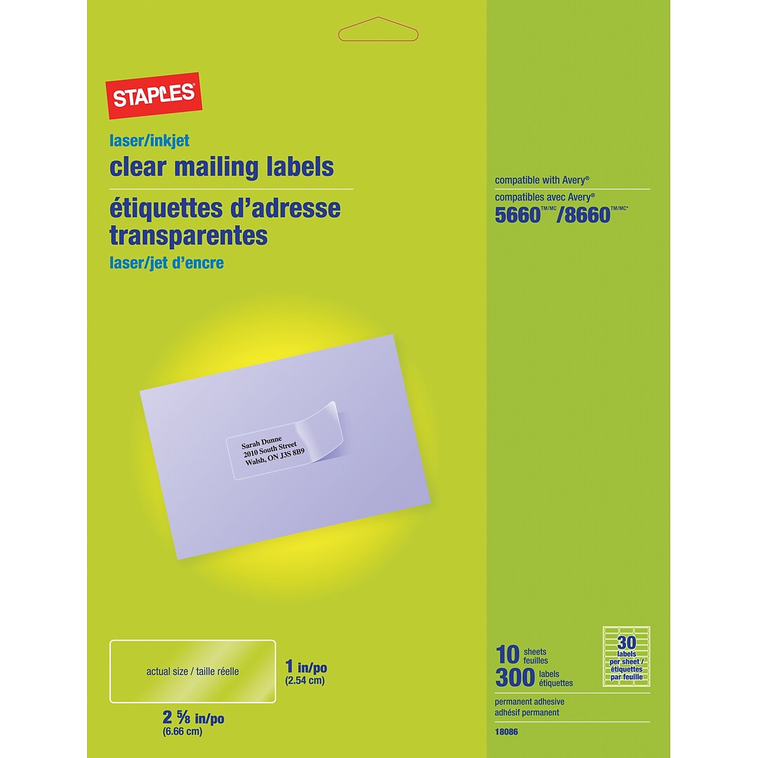 Avery Clear Address Labels 1″ x 2 5/8″ (5660) Avery labels are the perfect solution when you want to create professional labels quickly and easily. They're great for all your mailing and shipping needs, ...
